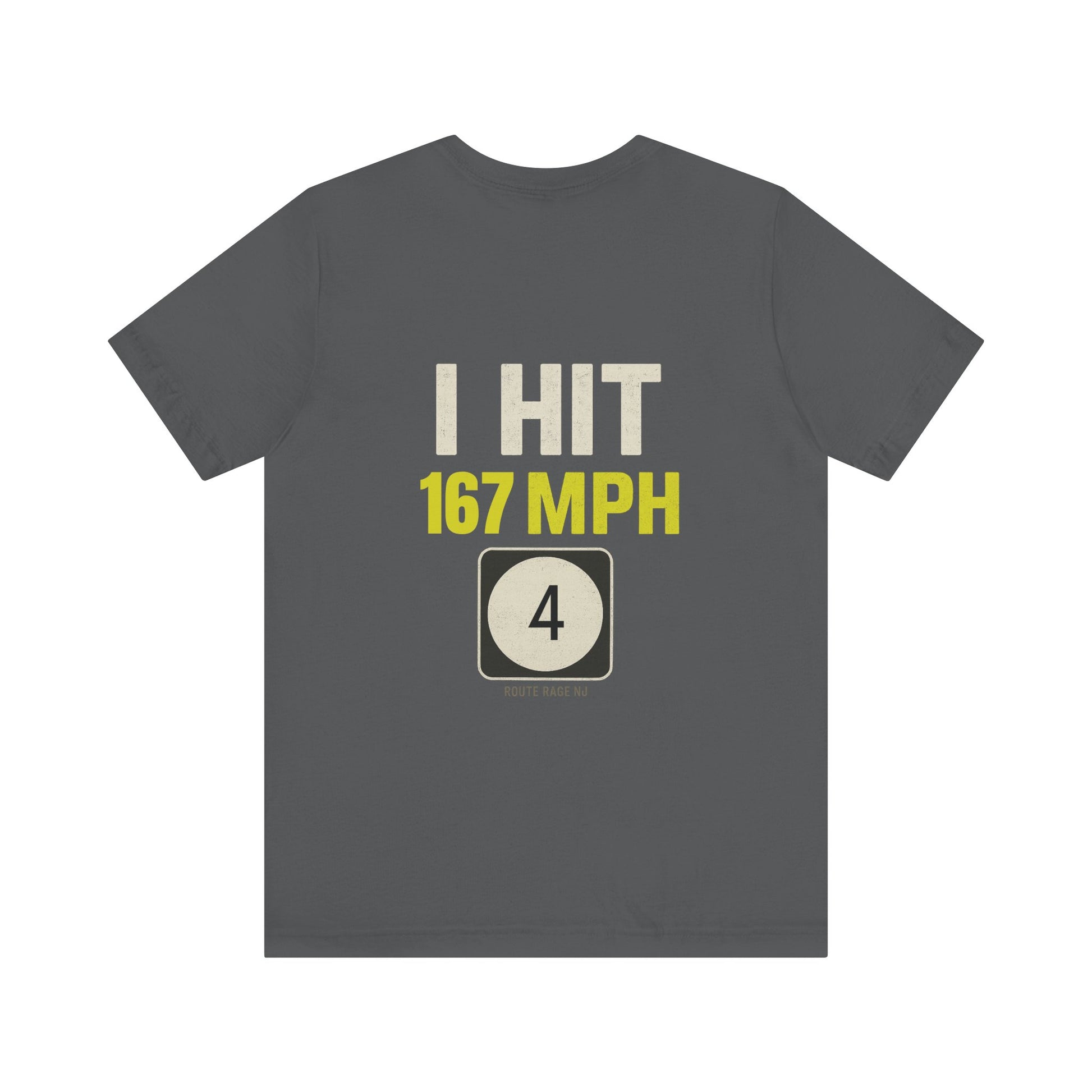 Personal brag tag for every Garden State speed demon—choose your road, set your record. The design features a distressed white “I HIT” header, a blank NJ Route shield for shoppers to drop in their route number, and a neon-yellow “MPH” footer for the user’s top speed. Vibe: A fun and customizable tee for speed enthusiasts in New Jersey, perfect for showcasing your highest speed record on your favorite road.